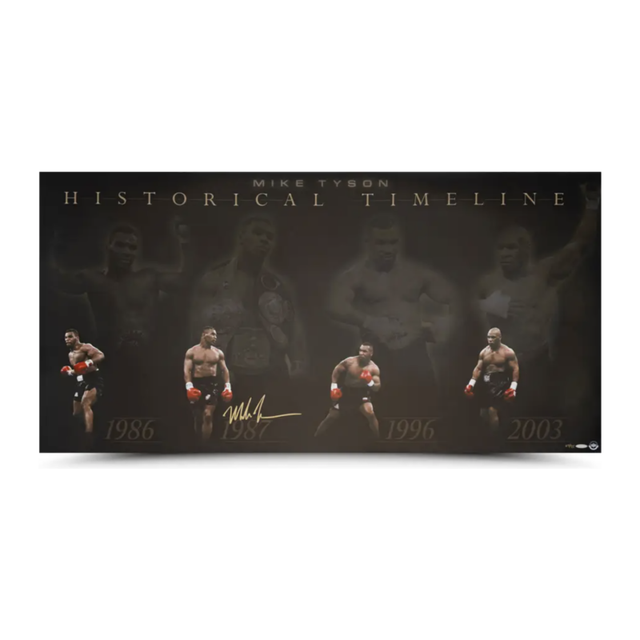Mike Tyson Autographed "Historical Timeline" 48x24 Photo UDA LE 75