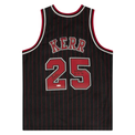 As a player, some of Steve Kerrs best moments in his basketball career came from his time as a Chicago Bull. Kerr played for five seasons with the Chicago Bulls primarily as the sixth man and three-point specialist. In two of his five seasons in Chicago, he received votes for Sixth Man of the Year. His best year came in the 1992-1993 season when he averaged 8.6 points and 2.6 assists in 82 games. Kerr ended up playing 378 games in a Bulls uniform, and he scored 3109 points along with three championships. Kerr's big moment came in game six of the 1997 finals. With the score tied at 86-86, Kerr found himself with the ball with less than 10 seconds left and he knocked down the game-winner to win the Finals. This Chicago Bulls black Swingman Mitchell & Ness jersey is autographed and inscribed "Three Peat 96·97·98" by Steve Kerr with a black paint pen. Kerr's signature and inscription were witnessed by an Upper Deck representative as part of UDA's 5-step authentication process. This item is limited to 25. You will receive a random number from the edition.