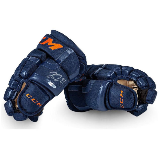 CONNOR McDAVID Edmonton Oilers Autographed 2017 CCM Navy Gloves UDA