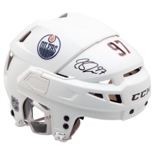 CONNOR McDAVID Autographed Edmonton Oilers CCM HTV08 White Helmet UDA