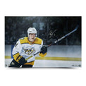 Oftentimes one of the best indicators for future success in the NHL is how well a skater does in international competitions before he gets to the league. If that rings true, the future is bright for Eeli Tolvanen. Playing for Team Finland, the talented forward was a significant contributor at many junior level tournaments, including helping Finland capture the gold medal at the 2016 IIHF World Under-18 Championships. He was impressive enough at the national team level to earn a roster spot for the 2018 Olympic Games. In his first Olympic Game, he scored four points in a 5-2 win over Germany. He went on to notch nine points in five games as Finland narrowly dropped a 1-0 game to Canada in the quarterfinals. Tolvanen possesses key high-level international experience, and that will only help him handle the spotlight in Nashville. Tolvanen has autographed this limited edition (50) “Spotlight” 24x16 designed image in silver paint pen. His signature is deemed authentic by virtue of Upper Deck Authenticated’s Five-Step Process.