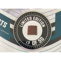 This Jalen Hurts Player Collage is the perfect way to rep your favorite Philadelphia Eagles player in your home or office. Easy to display or hang, it features a piece of a game-used football as well as a photo of the Philadelphia Eagles star ready to make a play on the field. This piece is limited to 50 and you will receive a random number from the edition. Please note that the signature is a facsimile signature.