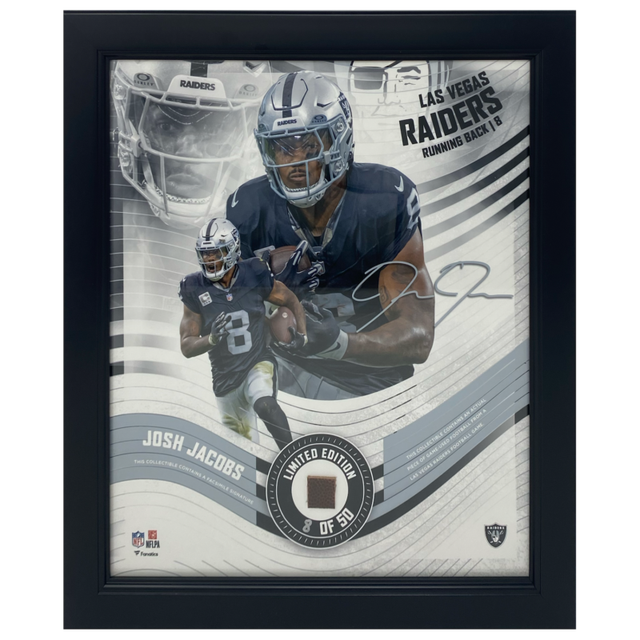 Josh Jacobs Raiders Framed 15" x 17" Game Used Football Collage LE 8/50