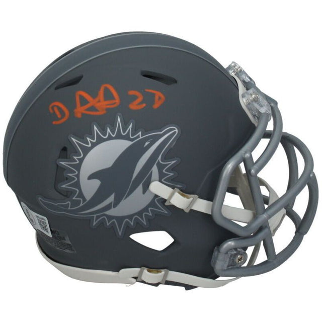 De'Von Achane Autographed Miami Dolphins Slate Mini Speed Helmet Beckett
