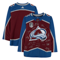 Boost your collection of Colorado Avalanche memorabilia with this Limited Edition 2022 Stanley Cup jersey with Multiple Signatures. All the individuals who signed this eye-catching collectible helped lead the Avalanche to the most wins in a regular season in franchise history with 56 and win their first Stanley Cup in more than 20 years. By the end of the four postseason rounds that they competed in, they boasted a 16-4 record, which included sweeping their opponents in the Western Conference First Round and Finals. Their All-Star centre, Nathan MacKinnon, led all skaters with 13 goals in the playoffs, while Cale Makar won the series MVP after a phenomenal round and entire postseason. You can remember their championship forever by making this hand-signed piece of memorabilia part of your collection. Includes an individually numbered, tamper-evident hologram. Signatures may vary. Limited edition of 100 - You will receive a random number from the edition. Stanley Cup Patch Burgundy Jersey Hand-signed autographs by Andre Burakovsky, J.T. Compher, Pavel Francouz, Erik Johnson, Darcy Kuemper, Gabriel Landeskog, Nathan MacKinnon, Cale Makar, Mikko Rantanen, Devon Toews and more. Officially licensed. This jersey is in stock and ready to ship. It is officially licensed by the National Hockey League and comes with an individually numbered, tamper-evident hologram from Fanatics Authentic. To ensure authenticity, the hologram can be reviewed online. This process helps to ensure that the product purchased is authentic and eliminates any possibility of duplication or fraud.