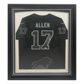 This Buffalo Bills Nike RFLCTV Black limited jersey has been personally hand-signed by Josh Allen. It comes with an individually numbered, tamper-evident hologram from Beckett Authentic. To ensure authenticity, the hologram can be reviewed online. This process helps to ensure that the product purchased is authentic and eliminates any possibility of duplication or fraud. This limited jersey has been custom framed and is ready to hang on the wall at your home or office. The overall measurements are 36" x 42" and include a custom acrylic team logo. This is a must see to truly appreciate.