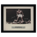 This 11" x 14" photograph of Muhammad Ali standing over Sonny Liston is the perfect addition to any collection. This photo has been custom framed and measures 19" x 19". This limited edition print comes complete with the 'Stacks of Plaques' certificate of authenticity.