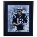 This 16" x 20" photograph has been personally hand signed by Tom Brady. It is officially licensed by the National Football League and comes with an individually numbered, tamper evident hologram from Fanatics Authentic. To ensure authenticity, the hologram can be reviewed online. This process helps to ensure that the product purchased is authentic and eliminates any possibility of duplication or fraud. This photograph has been custom framed and measures 20" x 24"