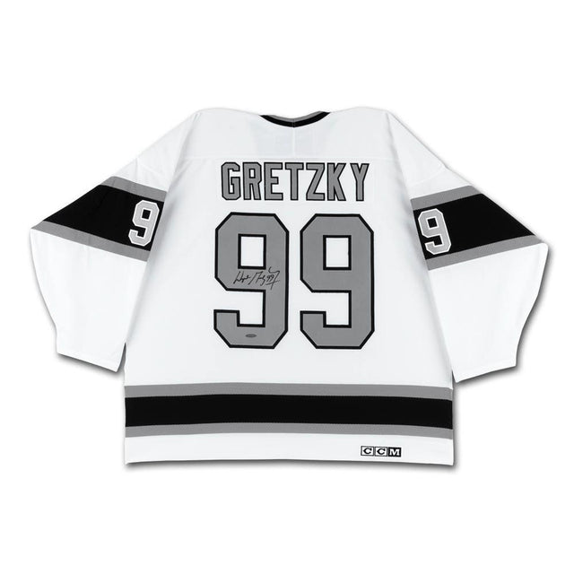 WAYNE GRETZKY Autographed Vintage Throwback White CCM Los Angeles Kings Jersey UDA