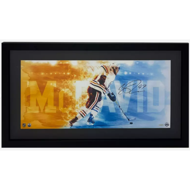 Connor McDavid Autographed Edmonton Oilers "Fire Speed" 16" x 30" Framed 12" x 26" Photo UDA