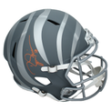 This Bengals Slate Riddell Speed full size replica helmet has been personally hand-signed by Boomer Esiason. It comes with an individually numbered, tamper-evident hologram from Beckett Authentic. To ensure authenticity, the hologram can be reviewed online. This process helps to ensure that the product purchased is authentic and eliminates any possibility of duplication or fraud.    Includes COA and hologram! Boomer's signature is guaranteed authentic through the Beckett Authentication system. MONEY BACK GUARANTEE! If for any reason you are not completely satisfied with the quality or authenticity of your purchase, we will gladly give you a full refund or exchange, whichever you prefer up to 30 days after purchase. Please feel free to e-mail us with any questions. Thank you. Authenticator Pre-Certified Authenticator: Beckett Authenticated Describe how you came to possess this item: Game Day Legends is a fully authorized dealer for Upper Deck Authenticated as well as Mounted Memories and Steiner Sports. Other information about you and / or the item: Game Day Legends strives to deliver the most authentic in sports memorabilia from trusted companies like Mounted Memories, Steiner Sports and Upper Deck Authenticated. If it exists, we can find it for you!