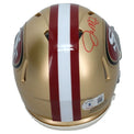 This San Francisco 49ers mini speed helmet has been personally hand-signed by Joe Montana. It comes with an individually numbered, tamper-evident hologram from Beckett Authentic. To ensure authenticity, the hologram can be reviewed online. This process helps to ensure that the product purchased is authentic and eliminates any possibility of duplication or fraud.