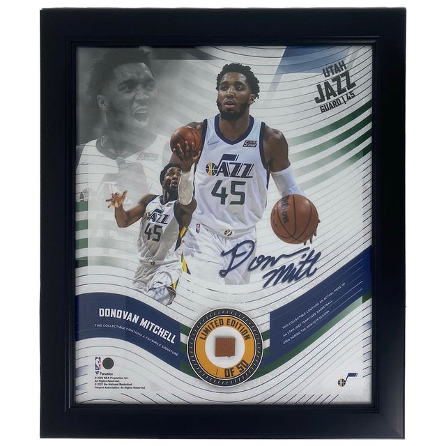 DONOVAN MITCHELL Utah Jazz Framed 15" x 17" Game Used Basketball Collage LE 1/50