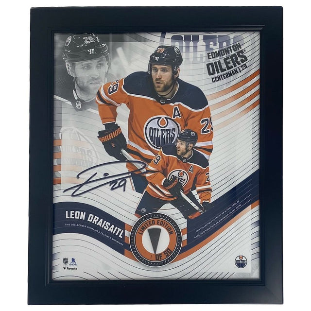 LEON DRAISAITL Edmonton Oilers Framed 15" x 17" Game Used Puck Collage LE 1/50