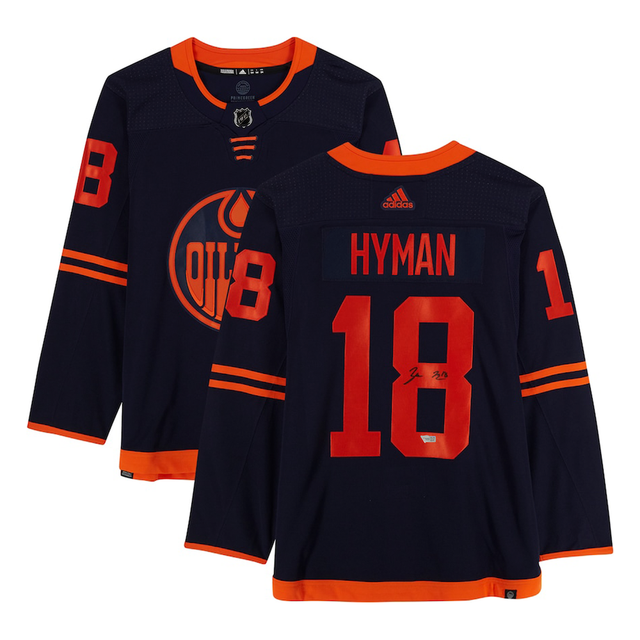 ZACH HYMAN Autographed Edmonton Oilers Authentic Navy Alt. Jersey FANATICS