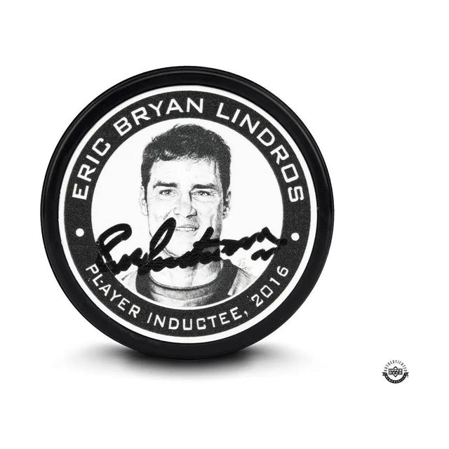 ERIC LINDROS Autographed “Hockey Hall of Fame” Puck UDA