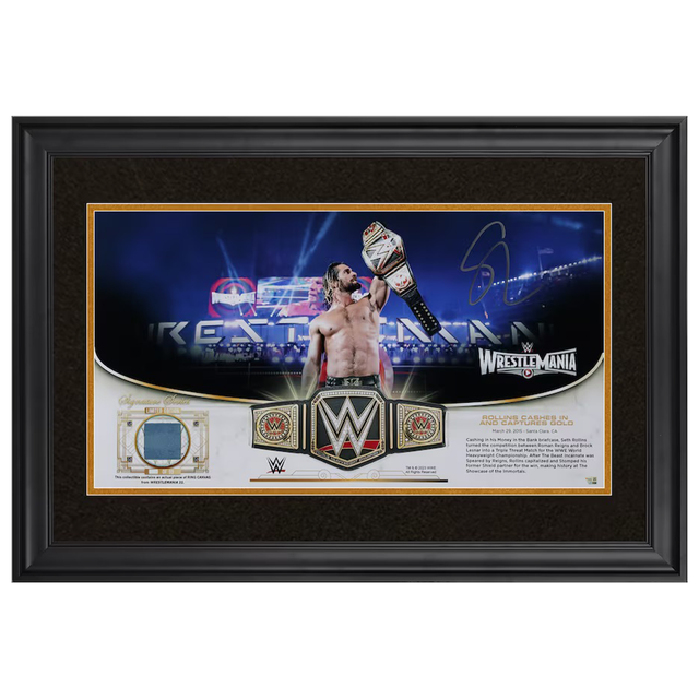 Seth Rollins Autographed WWE Match Used Canvas Framed 10" x 18" Display Fanatics