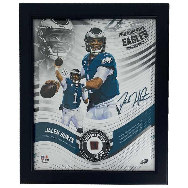 JALEN HURTS Eagles Framed 15" x 17" Game Used Football Collage LE 50