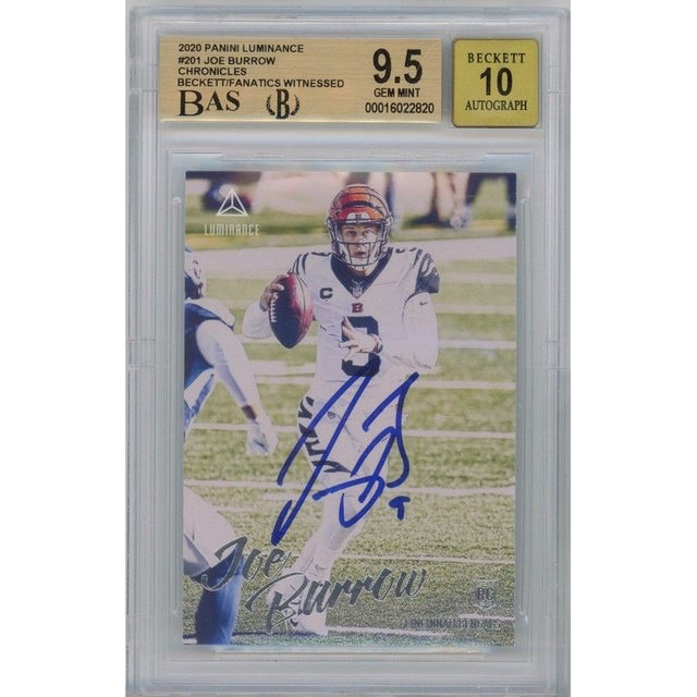 Joe Burrow Autographed Cincinnati Bengals 2020 Panini Luminance RC Card #201 Bengals BAS 9.5