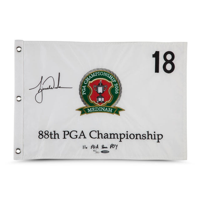 TIGER WOODS Autographed 2006 PGA Championship Pin Flag UDA LE 500