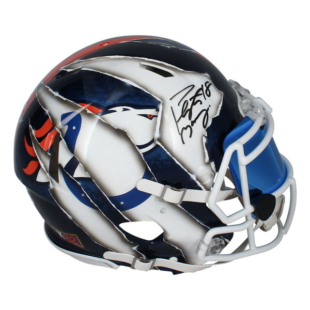 Peyton Manning Autographed Broncos / Colts Custom Ripped Speed Helmet Fanatics