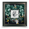 Brett Favre played 16 seasons as a member of the Green Bay Packers. Favre was inducted into the prestigious Pro Football Hall of Fame in 2016. He led the Packers to a Super Bowl championship, and the Green Bay Packers have honored him by retiring his jersey number, #4. Favre was the passing touchdown leader four times throughout his career and was a two-time NFL passing yards leader. In conjunction with Upper Deck Authenticated, Brett Favre is the latest in a short line of great athletes to be honored with a unique “Tegata” memorabilia piece. A “Tegata” is a traditional form of Japanese memorabilia that is reserved only for the most superior athletes. Utilizing handmade Japanese Hamada paper, Favre has inked his right hand in black and included an authentic Inkan stamp which aligns with the traditional craft. The overall keepsake, which measure 36" wide by 36" high, includes a 9.5" by 10.5" inset center upon which Favre’s hand has been inked and is surrounded by a double-matted collage style background of Green Bay Packers images. Favre performed the “Tegata” process under supervision of UDA officials and helped in the hand-crafting of 44 uniquely authentic stamps for the debut release. The limited-edition silver autographed hand print is guaranteed authentic by virtue of Upper Deck Authenticated’s Five-Step Authentication Process.