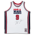 After Michael Jordan led the United States men's basketball team to an Olympic gold medal in the 1984 Games in Los Angeles, the '88 squad came up disappointingly short with a bronze medal in Seoul, South Korea. The following year, FIBA changed the rule that lifted the restriction of using NBA players. Hence was born the Dream Team. The 1992 team was filled with future Hall of Famers, had a bunch of Hall of Fame coaches, was captained by Magic and Bird and was led by the greatest player on the planet at the time in Jordan. That '92 team is widely considered the best team in the complete history of sport. Jordan has autographed this 1992 Team USA white authentic Mitchell & Ness jersey in black paint pen. His signature is deemed authentic by virtue of Upper Deck Authenticated's Five-Step Process.