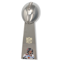 Tom Brady was drafted in the sixth round 199th overall in the 2000 NFL Draft by the New England Patriots. Backing up Drew Bledsoe there wasn't much of a chance for Brady to play until Bledsoe got hurt and Brady took over control. Since becoming the Patriots starter in 2001 the Michigan grad has led his teams to 8 Super Bowls (winning seven of them and was MVP in five of them). Besides the Super Bowls Brady has been to the Pro Bowl, won the NFL MVP and Offensive MVP on different occasions, was awarded the Comeback Player of the Year award, and broke the all-time touchdown passes in a single season.  This full size replica Vince Lombardi trophy signed by Tom Brady has been authenticated by Beckett and includes their hologram and certificate of authenticity. This trophy includes a hand painted limited edition image of Tom Brady. This trophy is limited to just 12. This trophy was made to the exact same measurements as an actual Lombardi trophy. Like the Lombardi trophy, it measures 21 inches high and just over 9 pounds. Like the Lombardi trophy, this is made of high quality polished metal. Made in the USA. Personally Autographed by Tom Brady. Includes tamper-evident hologram to ensure authenticity.