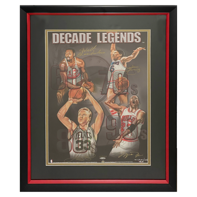 Jordan, Chamberlain, Bird and Erving Autographed Decade of Legends Photo UDA LE