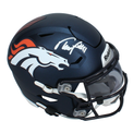This Denver Broncos SpeedFlex Midi helmet was hand signed by Troy Franklin. It comes with an individually numbered, tamper-evident hologram from Beckett Authentic. To ensure authenticity, the hologram can be reviewed online. This process helps to ensure that the product purchased is authentic and eliminates any possibility of duplication or fraud.