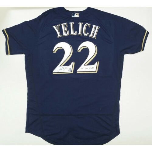 CHRISTIAN YELICH Autographed Milwaukee Brewers Authentic Majestic Navy Blue Jersey STEINER