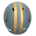 This San Francisco 49ers 'Slate' full size replica speed helmet has been personally hand-signed by Brock Purdy. It is officially licensed by the National Football League and comes with an individually numbered, tamper-evident hologram from Fanatics Authentic. To ensure authenticity, the hologram can be reviewed online. This process helps to ensure that the product purchased is authentic and eliminates any possibility of duplication or fraud. The autograph includes an official Fanatics hologram and matching COA for authenticity purposes. Comes with a tamper-evident hologram from Fanatics Authenticated. Officially licensed by the NFL.