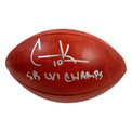 This authentic official Super Bowl LVI football has been personally hand-signed by Cooper Kupp with the added inscription "SB LVI Champs". It is officially licensed by the National Football League and comes with an individually numbered, tamper-evident hologram from Fanatics Authentic. To ensure authenticity, the hologram can be reviewed online. This process helps to ensure that the product purchased is authentic and eliminates any possibility of duplication or fraud.
