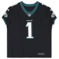 This Nike Elite jersey has been personally hand-signed by Jalen Hurts with the added inscription "SB LIX MVP." It is officially licensed by the National Football League and comes with an individually numbered, tamper-evident hologram from Fanatics Authentic. To ensure authenticity, the hologram can be reviewed online. This process helps to ensure that the product purchased is authentic and eliminates any possibility of duplication or fraud.