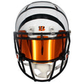 This white alternate speed authentic helmet has been personally hand-signed by Joe Burrow and Ja'Marr Chase. Included with this helmet are all the bells and whistles including 3D bumpers and visor. It is officially licensed by the National Football League and comes with an individually numbered, tamper-evident hologram from Fanatics Authentic and Beckett. To ensure authenticity, the hologram can be reviewed online. This process helps to ensure that the product purchased is authentic and eliminates any possibility of duplication or fraud.