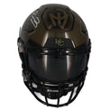 Patrick Mahomes Autographed Kansas City Chiefs Black/Olive Green Custom Painted Speed Flex Authentic Helmet with Shocc Visor and 3D Bumpers - Beckett Witnessed This Kansas City Chiefs Authentic Speed Flex helmet has been personally hand-signed by Patrick Mahomes. It is officially licensed by the National Football League and comes with an individually numbered, tamper-evident hologram from Beckett Authentic. To ensure authenticity, the hologram can be reviewed online. This process helps to ensure that the product purchased is authentic and eliminates any possibility of duplication or fraud.