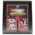 Commemorate the Tampa Bay Buccaneers as Super Bowl LV Champions with this framed collectible. Each piece comes designed with a collage of images, key players, game-used football and the team logo. This product is officially licensed by the National Football League. It is framed in black wood and measures 20" x 24" x 1''. This is a limited edition 12 of 500.
