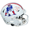 This Patriots throwback authentic speed flex helmet has been personally hand-signed by Tom Brady with the inscriptions "L.F.G." It is officially licensed by the National Football League and comes with an individually numbered, tamper-evident hologram from Fanatics Authentic. To ensure authenticity, the hologram can be reviewed online. This process helps to ensure that the product purchased is authentic and eliminates any possibility of duplication or fraud.This helmet is limited to 25 and you are bidding on number "16" from the edition.    Includes certificate of authenticity and hologram! Brady's signature is guaranteed authentic through the Fanatics Authentication system. MONEY BACK GUARANTEE! If for any reason you are not completely satisfied with the quality or authenticity of your purchase, we will gladly give you a full refund or exchange, whichever you prefer up to 30 days after purchase. Please feel free to e-mail us with any questions. Thank you. Authenticator Pre-Certified Authenticator: Fanatics Authenticated History of item: Tom Brady has signed this item in the presence of a representative from Fanatics. Describe how you came to possess this item: Game Day Legends is a fully authorized dealer for Upper Deck Authenticated as well as Mounted Memories and Steiner Sports. Other information about you and / or the item: Game Day Legends strives to deliver the most authentic in sports memorabilia from trusted companies like Mounted Memories, Steiner Sports and Upper Deck Authenticated. If it exists, we can find it for you!