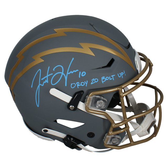 Justin Herbert Autographed Los Angeles Chargers "OPOY 20" "Bolt Up!" Speedflex Helmet Fanatics LE 25