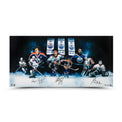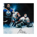 Wayne Gretzky brought tremendous success to the Edmonton Oilers franchise during the 1980s but could not have done it without his teammates. Gretzky, a gifted center with the ability to find the back of the net, relied on Paul Coffey defensively and Grant Fuhr to protect the net. Together they won three Stanley Cup Championships as members of the Oilers in 1984, ‘85 and again in the ‘87. The trio was part of the Oilers dynasty and all three have inked their signatures in black paint pen on this UDA designed Oilers collage. This autographed image by Gretzky, Coffey and Fuhr is limited to 50. Their signatures are deemed authentic by virtue of Upper Deck Authenticated’s Five-Step Process.