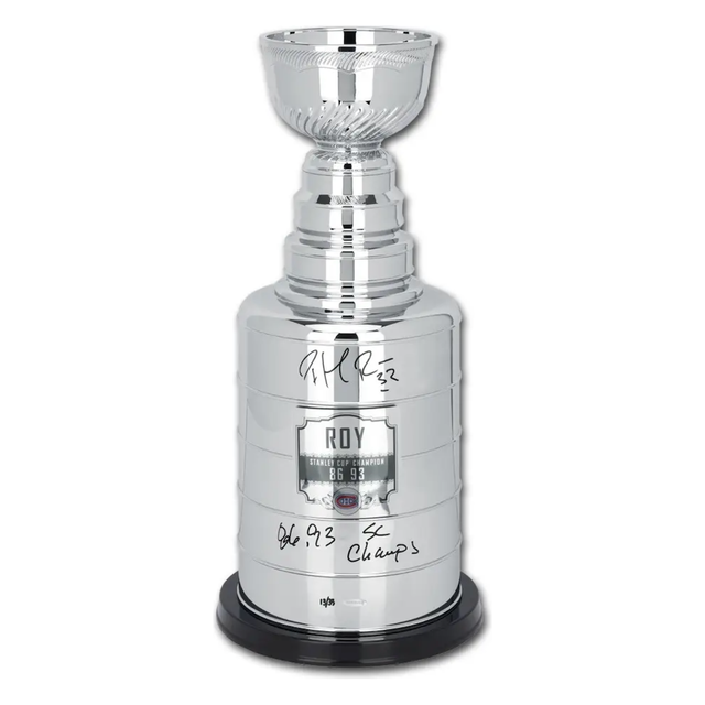 Patrick Roy Autographed Montreal Canadiens "86 93 SC Champs" Stanley Cup Trophy UDA LE 33