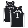 Victor Wembanyama Autographed San Antonio Spurs Nike Black Icon Edition Authentic Jersey with Sponsor Patch FanaticsThis Nike brand Icon Edition black authentic jersey has been personally hand-signed by Victor Wembanyama. It is officially licensed by the National Basketball Association and comes with an individually numbered, tamper-evident hologram from Fanatics Authentic. To ensure authenticity, the hologram can be reviewed online. This process helps to ensure that the product purchased is authentic and eliminates any possibility of duplication or fraud.Made in the USAPersonally Autographed by Victor WembanyamaFanatics Authentic Presented by Mounted MemoriesIncludes tamper-evident hologram to ensure authenticityOfficially licensed This product is guaranteed authentic and includes a Fanatics Certificate of Authenticity and an accompanying tamper-evident Fanatics Hologram. Includes certificate of authenticity and hologram! The signature is guaranteed authentic through the Fanatics hologram system. MONEY BACK GUARANTEE! If for any reason you are not completely satisfied with the quality or authenticity of your purchase, we will gladly give you a full refund or exchange, whichever you prefer up to 30 days after purchase. Please feel free to e-mail us with any questions. Thank you. Authenticator Pre-Certified Authenticator: Fanatics Authenticated History of item: This item has been signed in the presence of a representative from Fanatics. Describe how you came to possess this item: Game Day Legends is a fully authorized dealer for Upper Deck Authenticated as well as Mounted Memories and Steiner Sports. Other information about you and / or the item: Game Day Legends strives to deliver the most authentic in sports memorabilia from trusted companies like Mounted Memories, Steiner Sports and Upper Deck Authenticated. If it exists, we can find it for you!