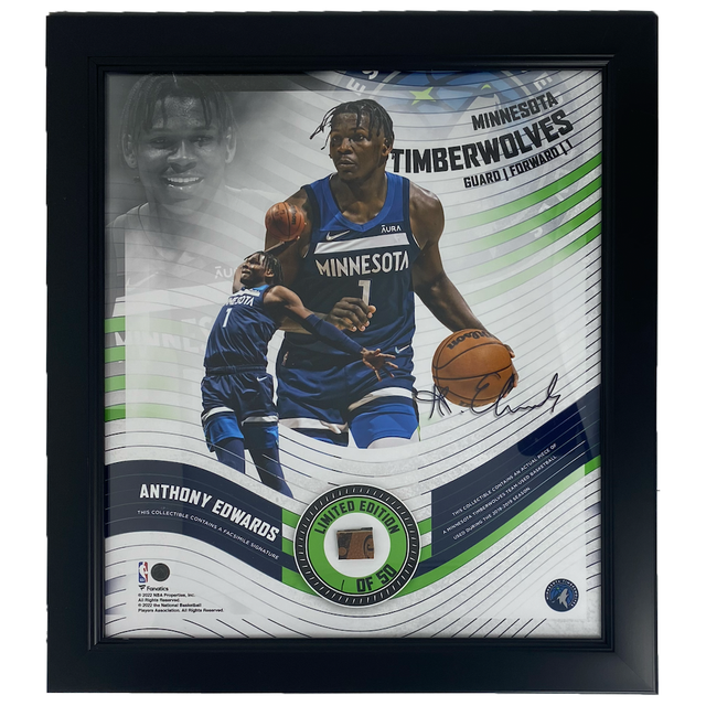 ANTHONY EDWARDS Timberwolves Framed 15 x 17 Game Used Basketball Collage LE 1/50