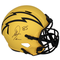 This Los Angeles Chargers full size replica speed helmet has been personally hand-signed by Antonio Gates. It comes with an individually numbered, tamper-evident hologram from Beckett Authentic. To ensure authenticity, the hologram can be reviewed online. This process helps to ensure that the product purchased is authentic and eliminates any possibility of duplication or fraud.