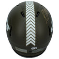 This New York Jets 2022 Salute to Service authentic Riddell speed helmet has been personally hand-signed by Davante Adams. It comes with an individually numbered, tamper-evident hologram from Beckett Authentic. To ensure authenticity, the hologram can be reviewed online. This process helps to ensure that the product purchased is authentic and eliminates any possibility of duplication or fraud.