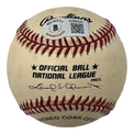 This is your chance to own a very rare collectible as you bid on this George Pfister autographed National League Baseball. This ball comes with the patented Beckett hologram.
