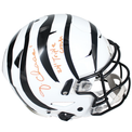 This Bengals authentic Riddell Speedflex alternate helmet has been personally hand-signed by Ja'Marr Chase with the added inscription "24 Triple Crown." It comes with an individually numbered, tamper-evident hologram from Beckett Authentic. To ensure authenticity, the hologram can be reviewed online. This process helps to ensure that the product purchased is authentic and eliminates any possibility of duplication or fraud.