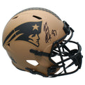 This New England Patriots Salute To Service full size speed replica helmet has been personally hand-signed by Rob Gronkowski. It comes with an individually numbered, tamper-evident hologram from Radtke Authentic. To ensure authenticity, the hologram can be reviewed online. This process helps to ensure that the product purchased is authentic and eliminates any possibility of duplication or fraud.