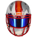 OM BRADY Autographed FSM Custom "Ripped" Style New England Patriots / Tampa Bay Buccaneers Speed Authentic Helmet w/ "MOST SB MVPS" Inscription TRISTAR. This Mashup Tampa Bay Buccaneers / New England Patriots Riddell authentic speed helmet has been personally hand-signed by Tom Brady with the added inscription "Most SB MVP's." Included with the helmet are all the upgrades; custom facemask and 3D bumpers. This helmet is a show stopper. It comes with an individually numbered, tamper-evident hologram from TriStar Authentic. To ensure authenticity, the hologram can be reviewed online. This process helps to ensure that the product purchased is authentic and eliminates any possibility of duplication or fraud.